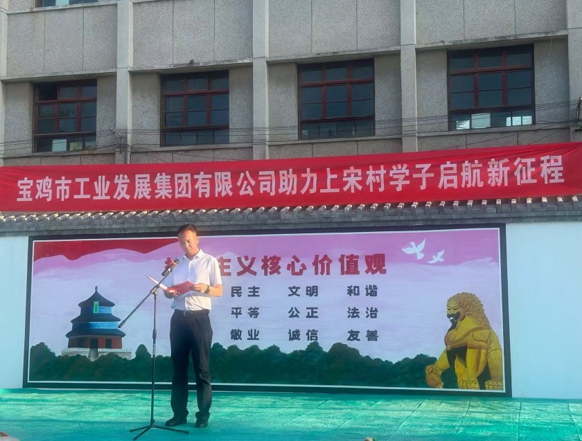 金秋送爽,硕果盈枝。8月19日下午,一场充满温情与希望的“金秋送暖 助学圆梦”活动在扶风县绛帐镇上宋村举行。宝鸡市工业发展集团有限公司带着对乡村教育事业的深切关怀和对莘莘学子的殷切期望,为上宋村品学兼优的学子们送去助学爱心物资,以实际行动践行国有企业初心使命,为农村学子圆梦续航,为乡村振兴赋能助力。工发集团党委书记、董事长罗鹏伟一行及绛帐镇人民政府、上宋村村委会相关负责人、受赠学生及家长代表共同参加活动。 聚焦教育振兴 彰显国企担当