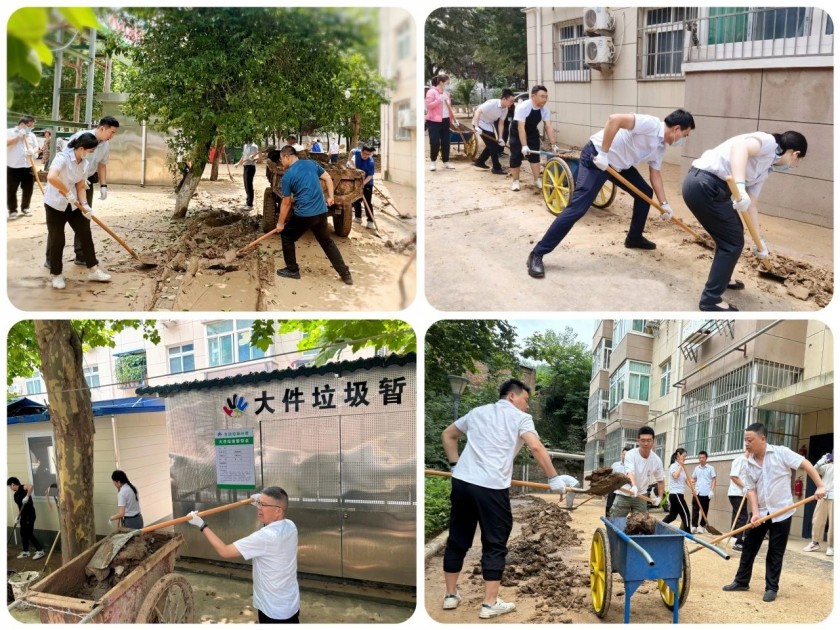 民有所呼,党有所应。在清淤现场,路面被厚厚的淤泥覆盖,小区周围大量泥沙、砂浆树枝堆积,道路严重堵塞,清理难度极大,导致居民生活出行困难。公司党委紧急启动应急预案,迅速成立党员先锋突击队,立即组织党员干部、员工赶赴现场展开各项抢险救援工作。大家分工明确,协作有序,手持铁锨、锄头等工具,一铲一铲排除涝点、清除淤泥、恢复原状;分区域配合现场的清运车、推土机、翻斗车等设备一点一点清运路面淤泥、杂物。虽然汗水湿透了衣衫、疲惫侵蚀着身躯、可大家依然咬紧牙关,奋力拼搏,用实际行动充分发扬不怕苦、不怕累的“战斗”精神,积极为打赢防汛救灾这场“硬仗”贡献力量。 灾情就是命令,抢险就是责任。在全体党员干部、员工的共同努力奋战下,受灾严重的小区路面脏污、淤堵情况得到了明显改善,充分展现了国资人讲政治、能吃苦、敢战斗、愿奉献的可贵精神。目前正处于灾后清淤关键期,公司党委要求全体党员干部、员工密切关注雨情汛情,紧盯重点区域,加强隐患排查整治工作,把职责使命扛在肩上,把群众利益放在心上,积极发挥党员先锋模范作用,彰显国资人始终牢记笃行“民生为大”的责任与担当。