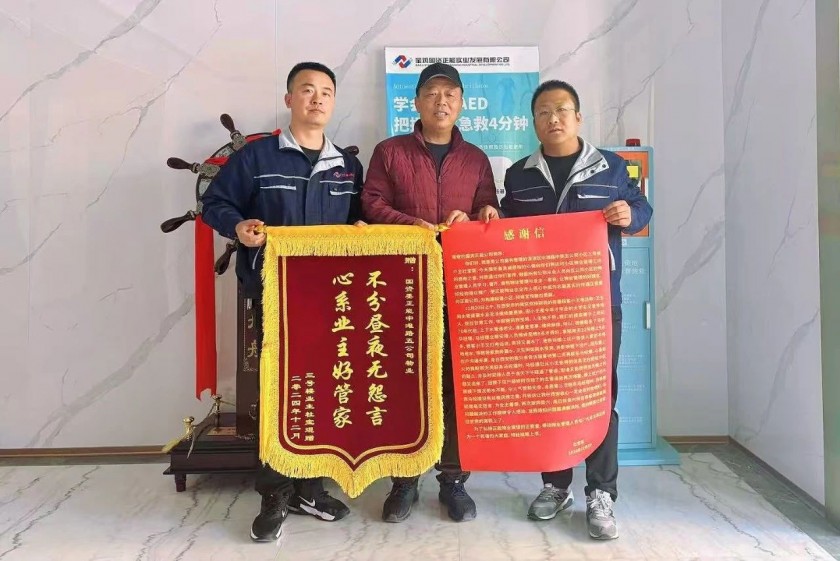 在接受锦旗时,中滩路五公司物业办的负责人表示,这面锦旗是对他们工作的极大鼓励和认可。他们会继续保持高标准的服务态度,不断提升业务能力,以更加严谨的工作态度和更加热情的服务质量,回应广大业主的支持和期待。同时,此事件也激励着其他员工,为他们树立了良好的榜样,共同推动公司文化向更高标准发展。 小服务 大担当 近日,宝鸡国资正能实业发展有限公司收到一面来自五公司中滩路小区项目业主的锦旗,印有“不分昼夜无怨言,心系业主好管家”字样的锦旗与感谢信,表达着业主对公司小区管理工作的感谢之意。